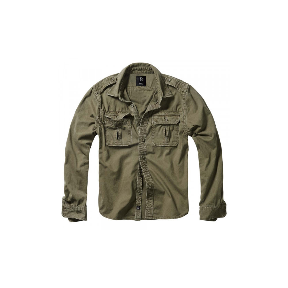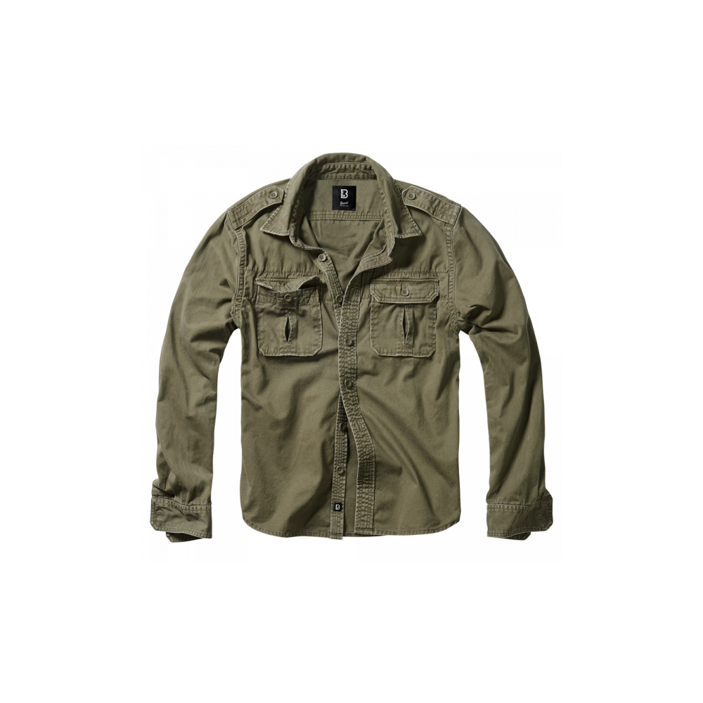 Olivová pánská košile Brandit 9373.1 Vintage přináší spojení pohodlí a army stylu.
