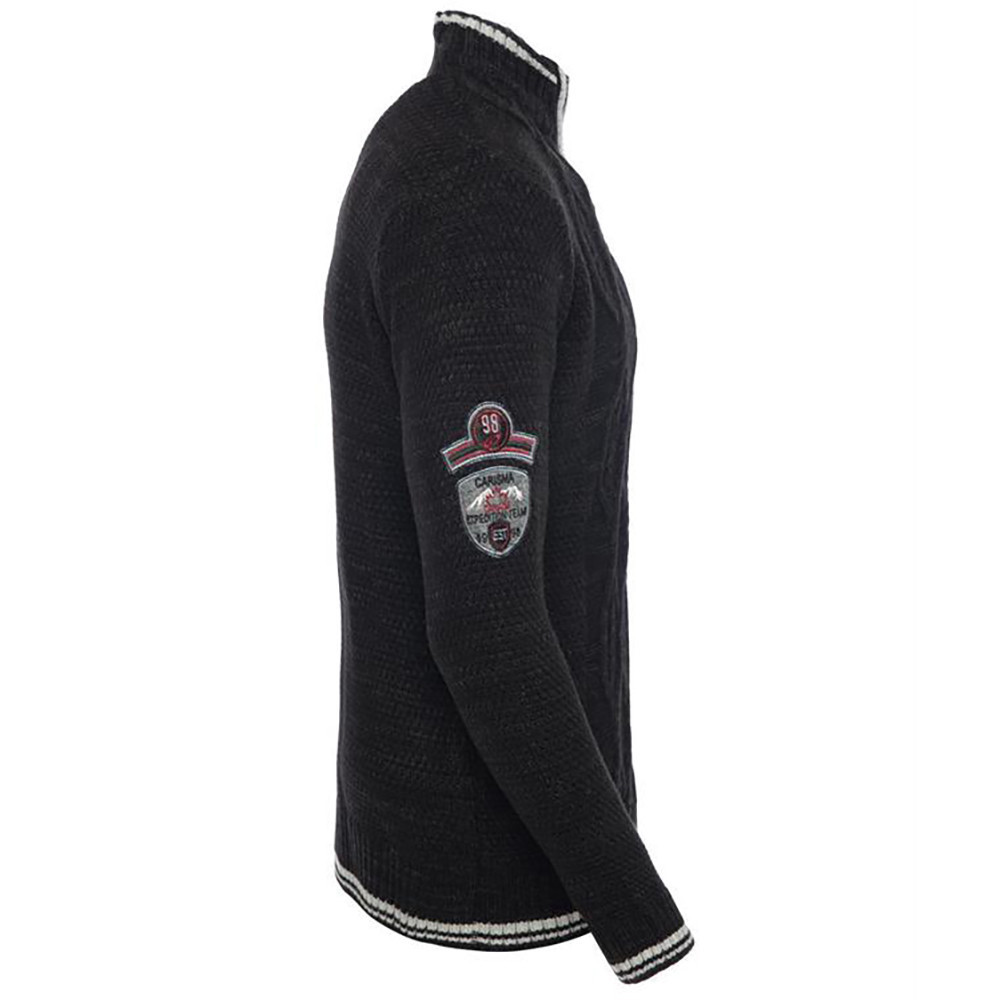Moderní pánský svetr CARISMA 7804 v černé barvě s pleteným vzorem a zipem ve výstřihu do V.