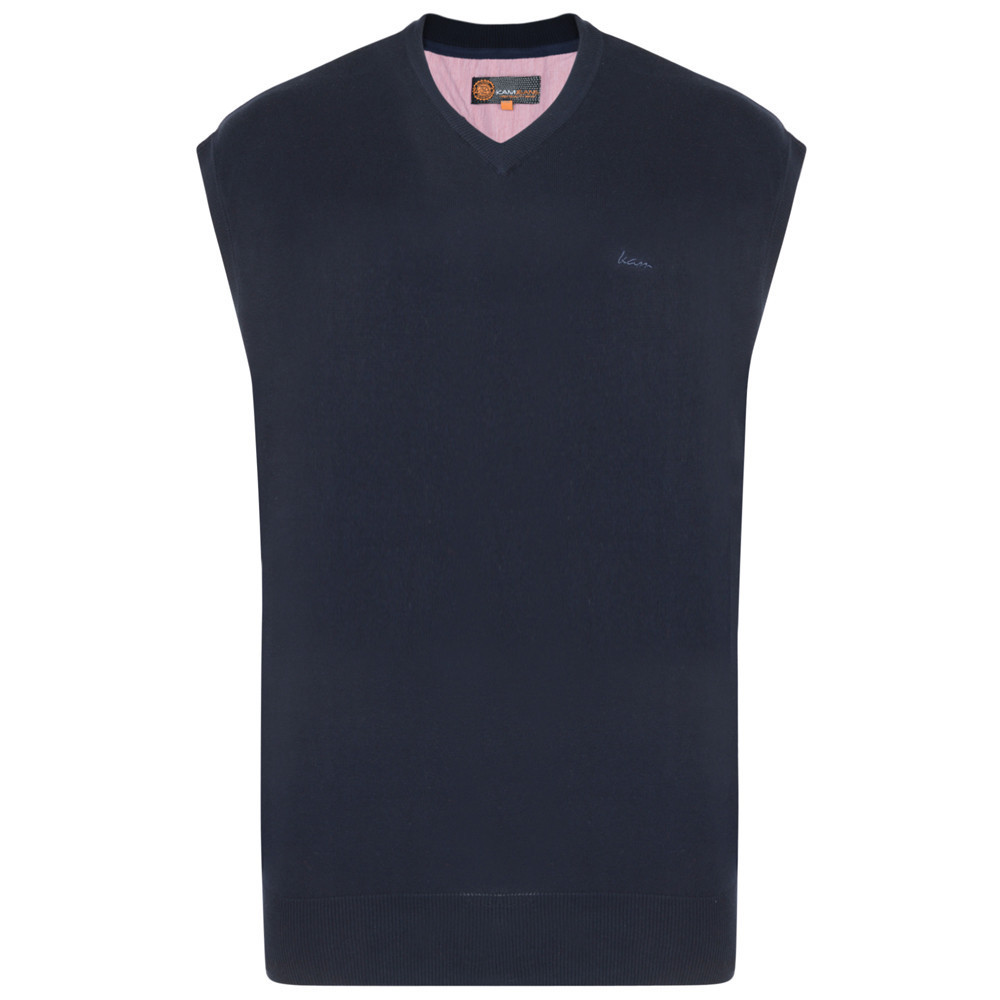 Pánská pletená vesta KAM KBS 56 v tmavě modré barvě. Nadměrná velikost, pohodlný střih.