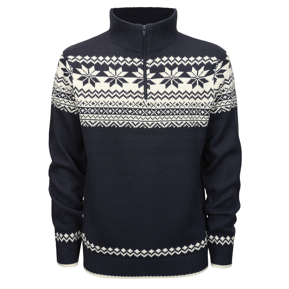 Pánský pletený svetr BRANDIT 5029.8 v tmavě modré barvě kombinuje klasický norský vzor s moderním komfortem.