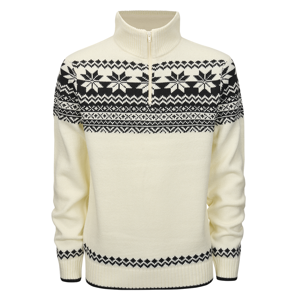 Pánský pletený svetr BRANDIT v barvě ecru s norským vzorem a zipem nabízí hřejivý komfort a nadčasový skandinávský styl.
