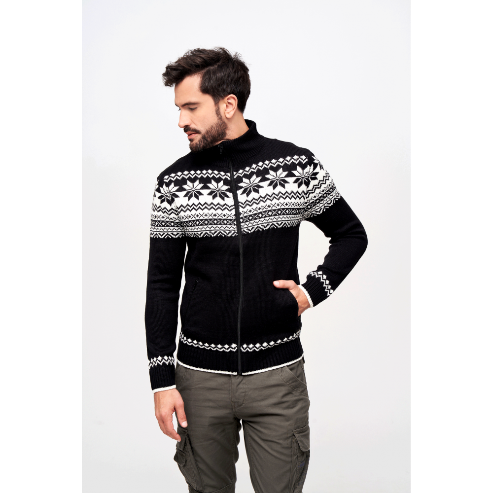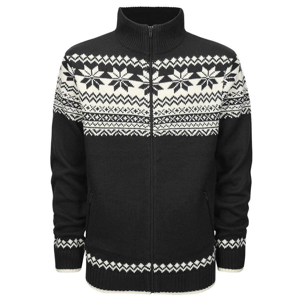 Černý pánský pletený svetr BRANDIT s norským vzorem a zipem nabízí hřejivý komfort, nadčasový styl a praktické detaily.