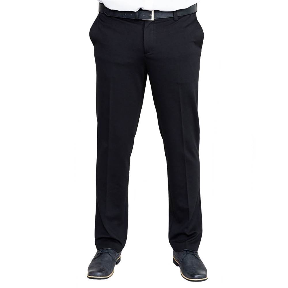 Kalhoty jsou vyrobeny z pružného materiálu (85 % polyester, 10 % viskóza, 5 % elastan), který zaručuje pohodlné nošení po celý den a zároveň drží formální tvar. Černá barva je univerzální a snadno kombinovatelná s košilí nebo sakem.