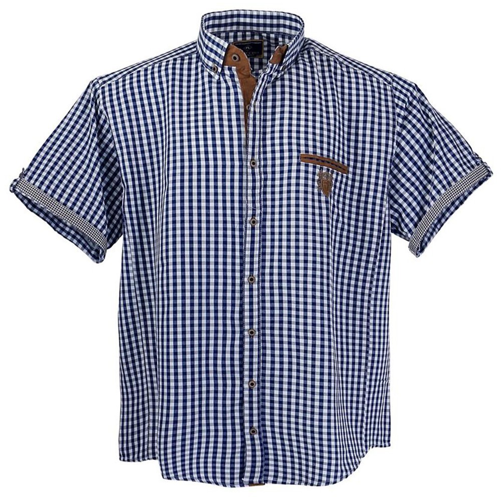 Košeľa s krátkym rukávom v nadmerných veľkostiach 3 - 7XL. Košeľa je vyrobená 90% bavlna, 10% polyester a je strihu regular fit. Košeľa má okraj rukávov v inom vzore. Vnútro légii je v hnedej farbe. Na hrudi je logo firmy.