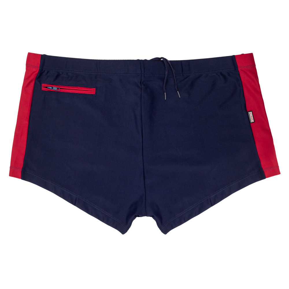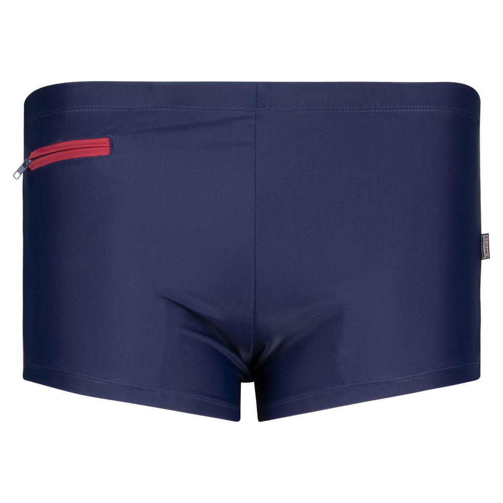Pánske kúpacie plavky ADAMO 141724 tmavomodré, nadmerné veľkosti, s vreckom na zips a šnúrkou, 80 % polyamid, 20 % elastan.