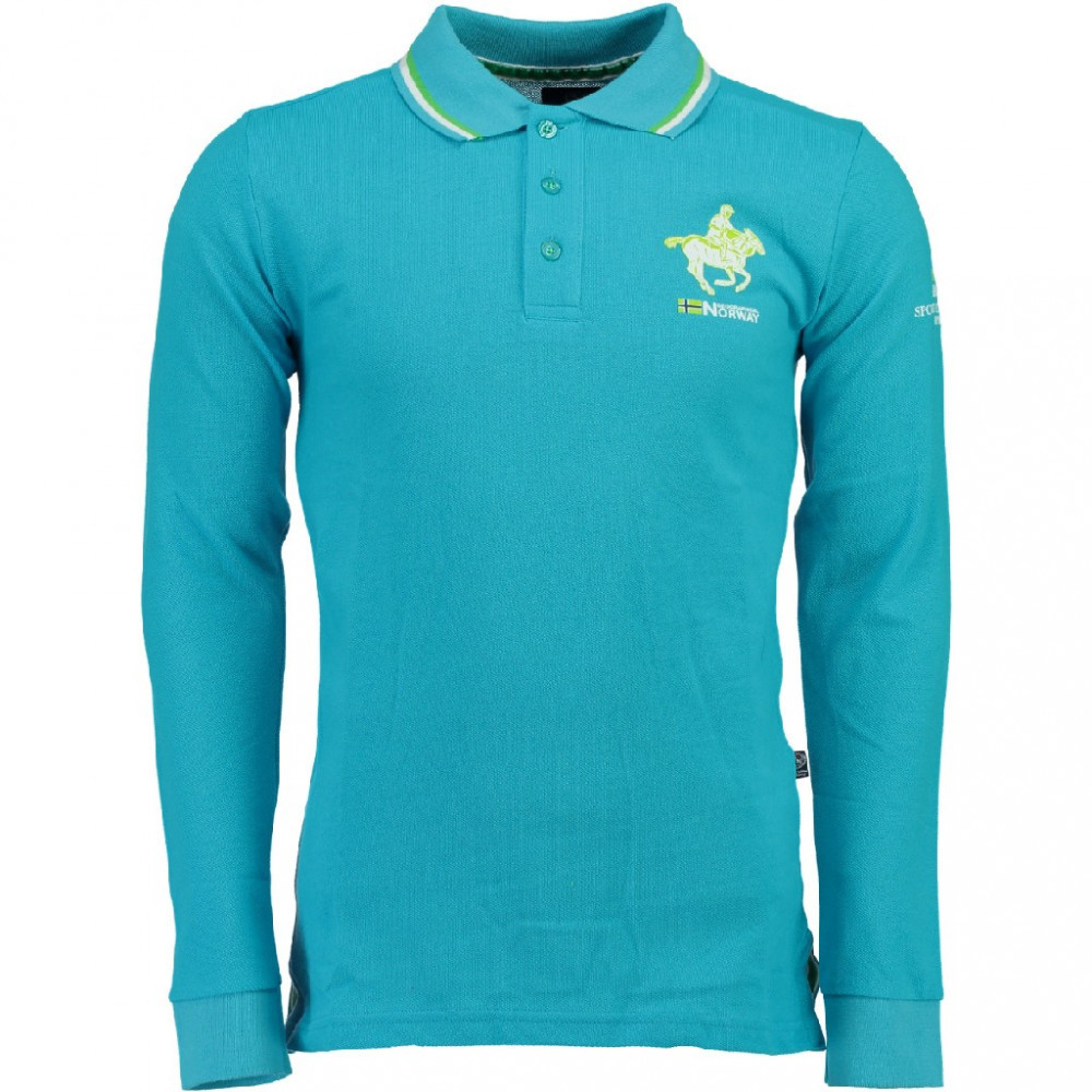 Pánska polokošeľa GEOGRAPHICAL NORWAY KOURO MEN v tyrkysovej farbe z kvalitnej 100% bavlny s výšivkou na hrudi.