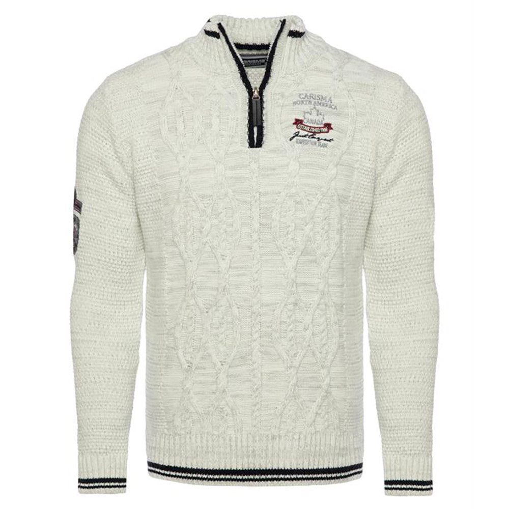Štýlový pánsky sveter CARISMA 7804 v ecru farbe so vzorom a výstrihom do V na zips.