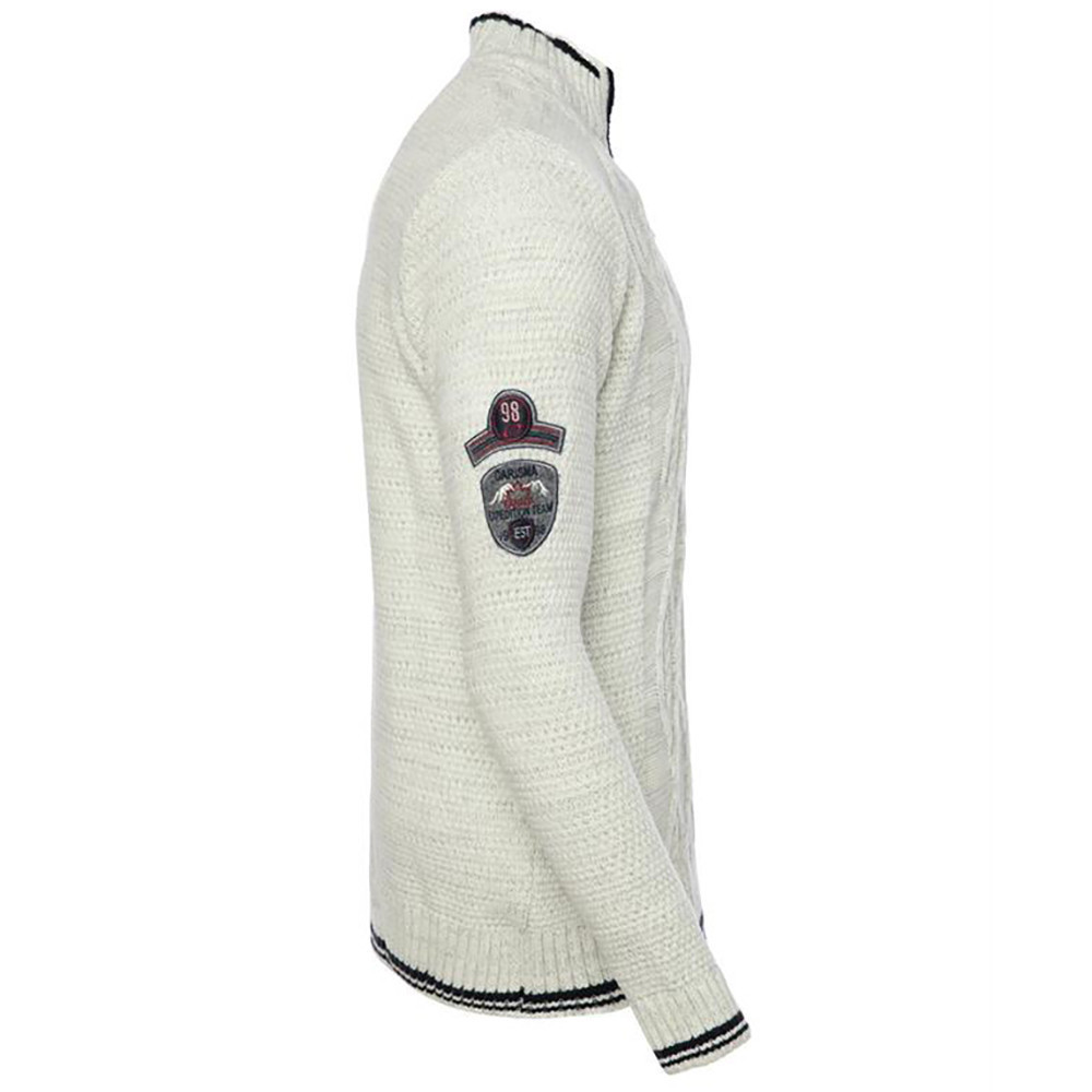 Pánsky pletený sveter BRANDIT v farbe ecru s nórskym vzorom a zapínaním na zips ponúka štýl, teplo a pohodlie.