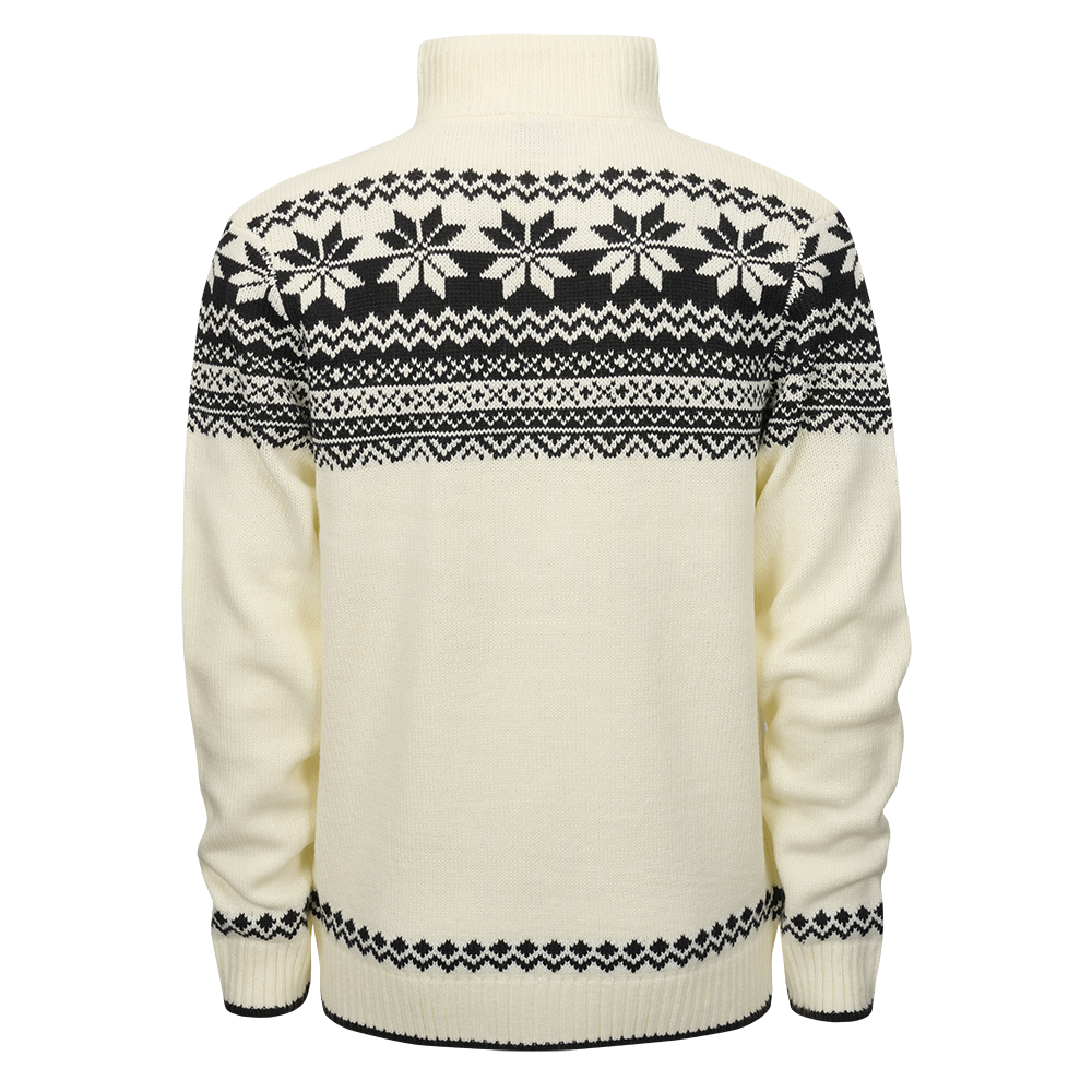 Nórsky vzor dodáva svetru elegantný zimný charakter a svetlé farebné prevedenie pôsobí čisto a moderne.