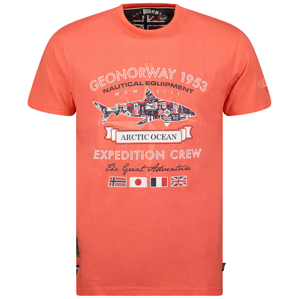 Pánske tričko Geographical Norway J-SHARK MEN v korálovej farbe z príjemnej 100 % bavlny.