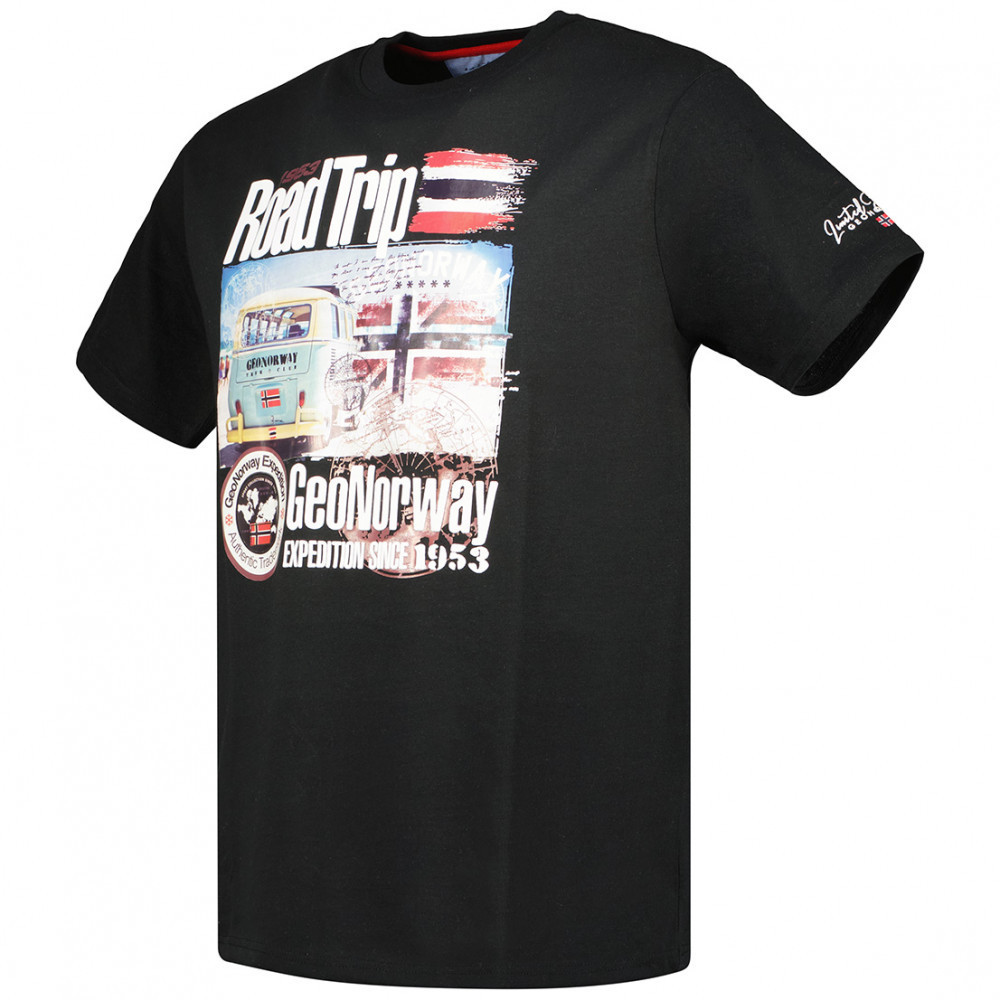 Pánske tričko Geographical Norway JIAMI MEN v čiernej farbe zo 100% bavlny, ideálne na každodenné nosenie.